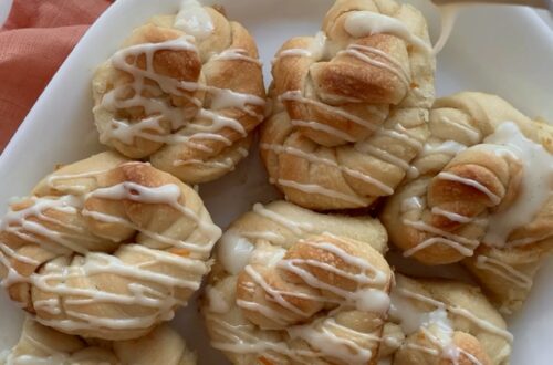 - If adding glaze, let focaccia cool completely before adding. Mix powdered sugar, vanilla bean paste, and milk or orange juice together until desired consistency and then pour over focaccia and enjoy!
